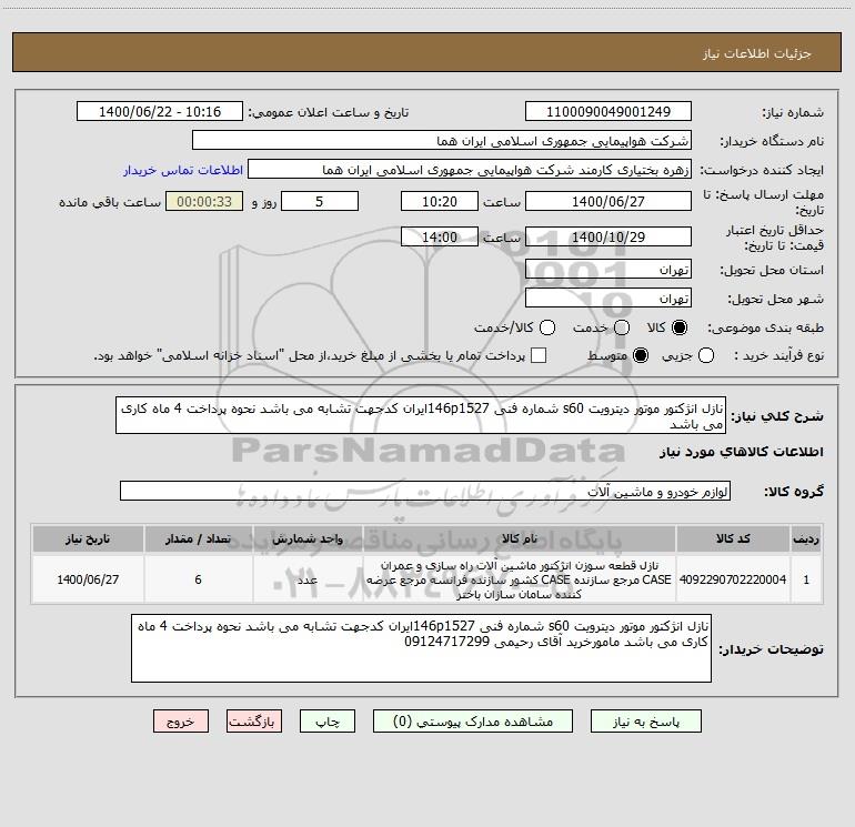شرح کلی نیاز: نازل انژکتور موتور دیترویت s60 شماره فنی 146p1527ایران کدجهت تشابه می باشد نحوه پرداخت 4 ماه کاری می باشد