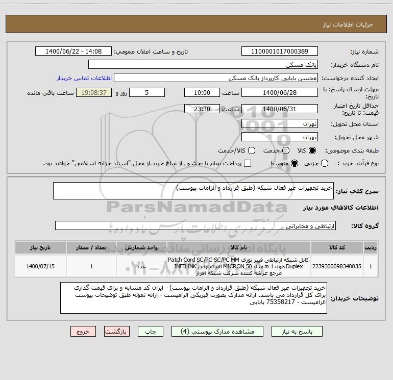 شرح کلی نیاز: خرید تجهیزات غیر فعال شبکه (طبق قرارداد و الزامات پیوست)