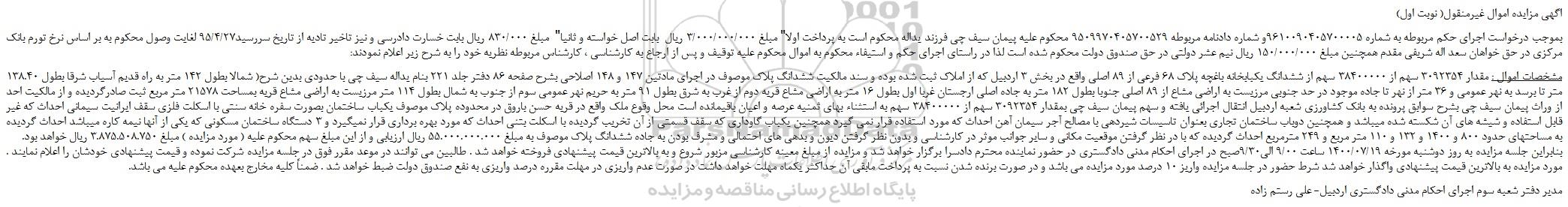 اگهی مزایده اموال غیرمنقول( نوبت اول)