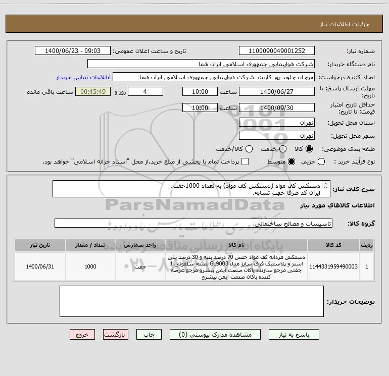 نام دستگاه خریدار:شرکت هواپیمایی جمهوری اسلامی ایران هما