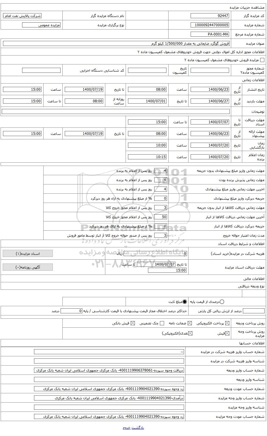| شماره مزایده مرجع | PA-0001-MA | |||