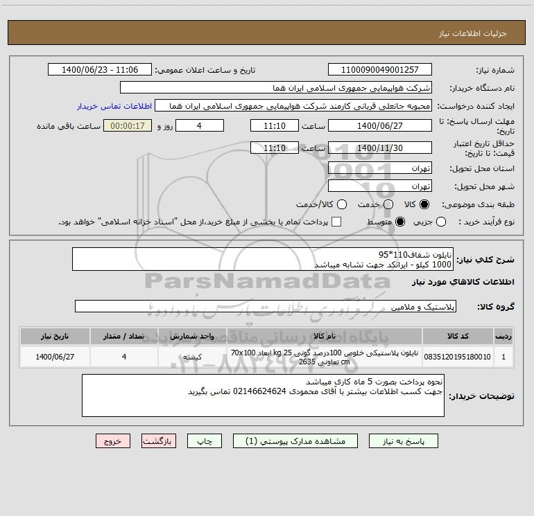 شرح کلی نیاز: نایلون شفاف110*95 1000 کیلو - ایرانکد جهت تشابه میباشد