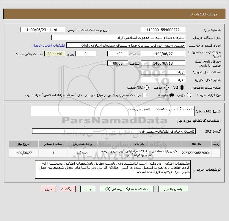 نام دستگاه خریدار:سازمان صدا و سیمای جمهوری اسلامی ایران