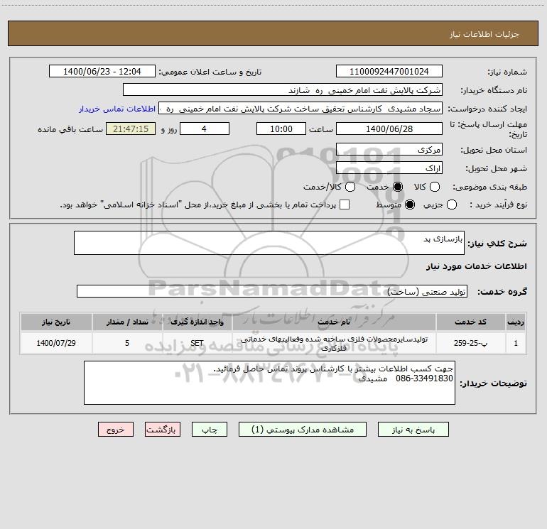 نام دستگاه خریدار:شرکت پالایش نفت امام خمینی ره شازند