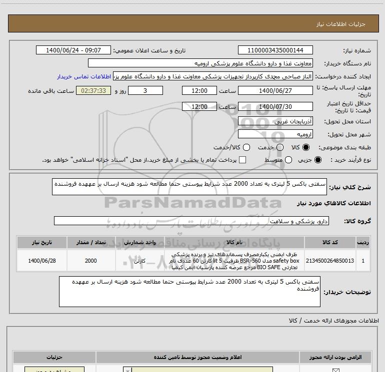 نام دستگاه خریدار:معاونت غذا و دارو دانشگاه علوم پزشکی ارومیه
