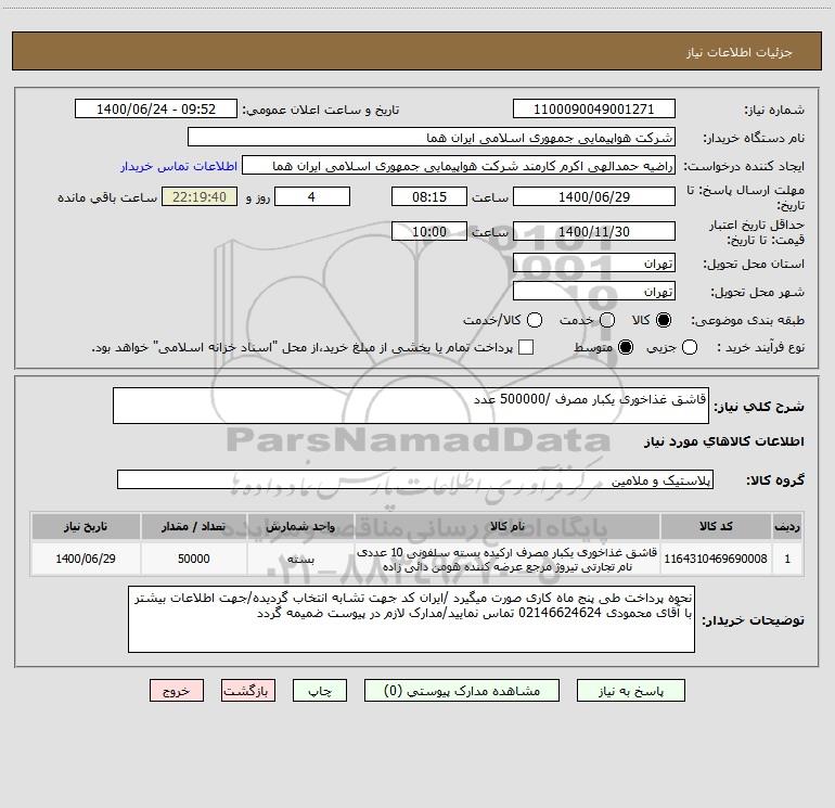 شرح کلی نیاز: قاشق غذاخوری یکبار مصرف /500000 عدد