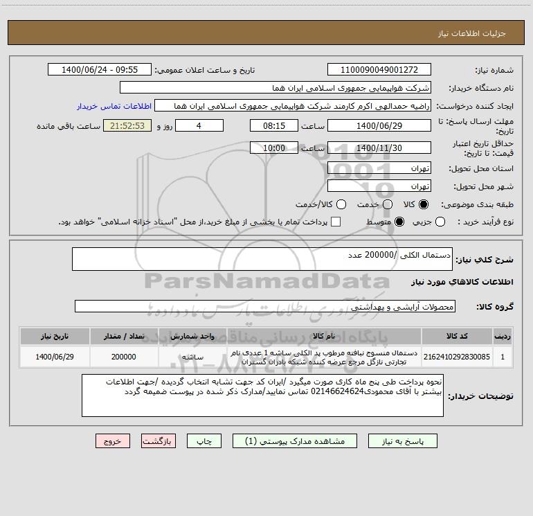 استعلام دستمال الکلی /200000 عدد , استعلام دستمال الکلی /200000 عدد