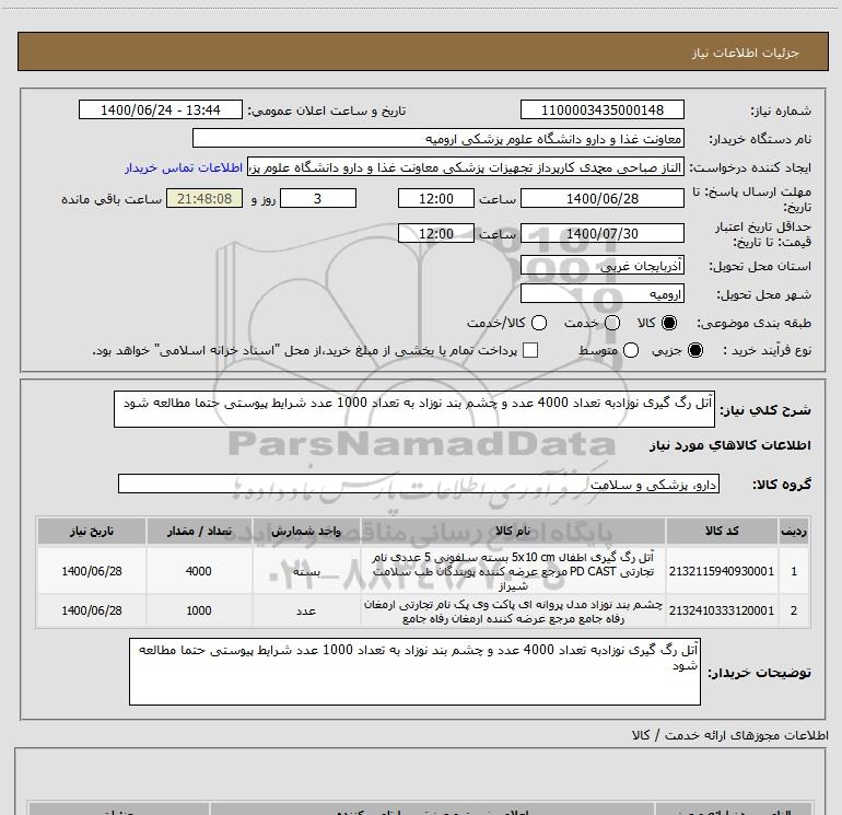 نام دستگاه خریدار:معاونت غذا و دارو دانشگاه علوم پزشکی ارومیه