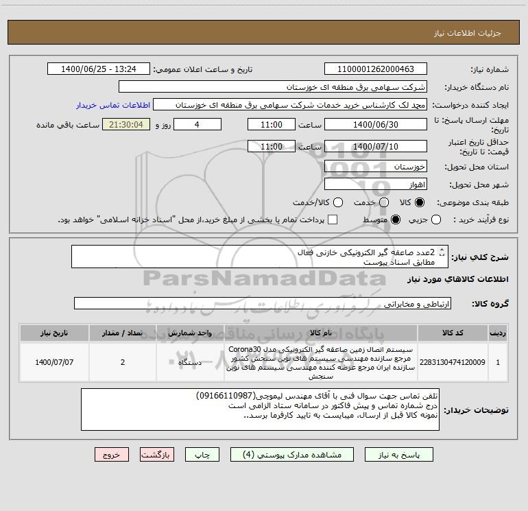 نام دستگاه خریدار:شرکت سهامی برق منطقه ای خوزستان