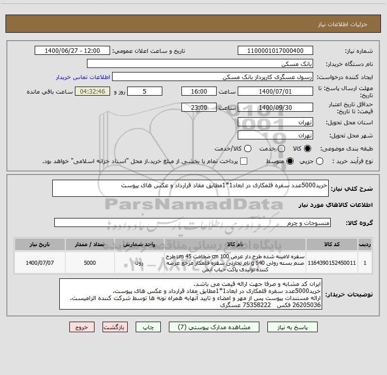 نام دستگاه خریدار:بانک مسکن