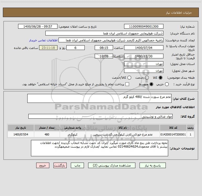 شرح کلی نیاز: تخم مرغ سورت شده /480 کیلو گرم