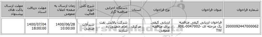 مناقصه، فراخوان ارزیابی کیفی مناقصه یک مرحله ای RNL-0047002-TW, فراخوان ارزیابی کیفی مناقصه یک مرحله ای RNL-0047002-TW