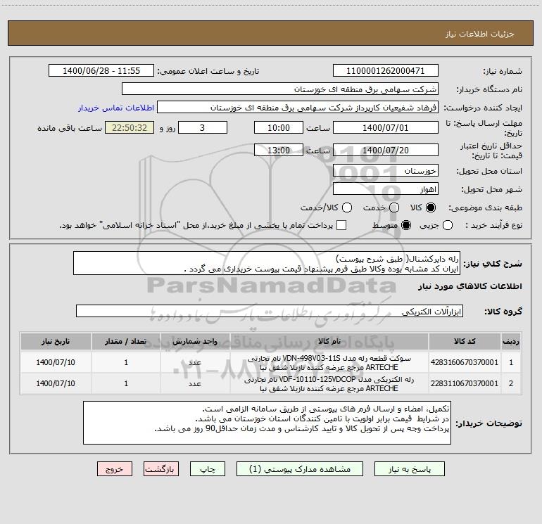نام دستگاه خریدار:شرکت سهامی برق منطقه ای خوزستان