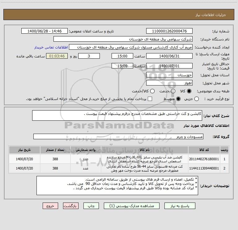 نام دستگاه خریدار:شرکت سهامی برق منطقه ای خوزستان