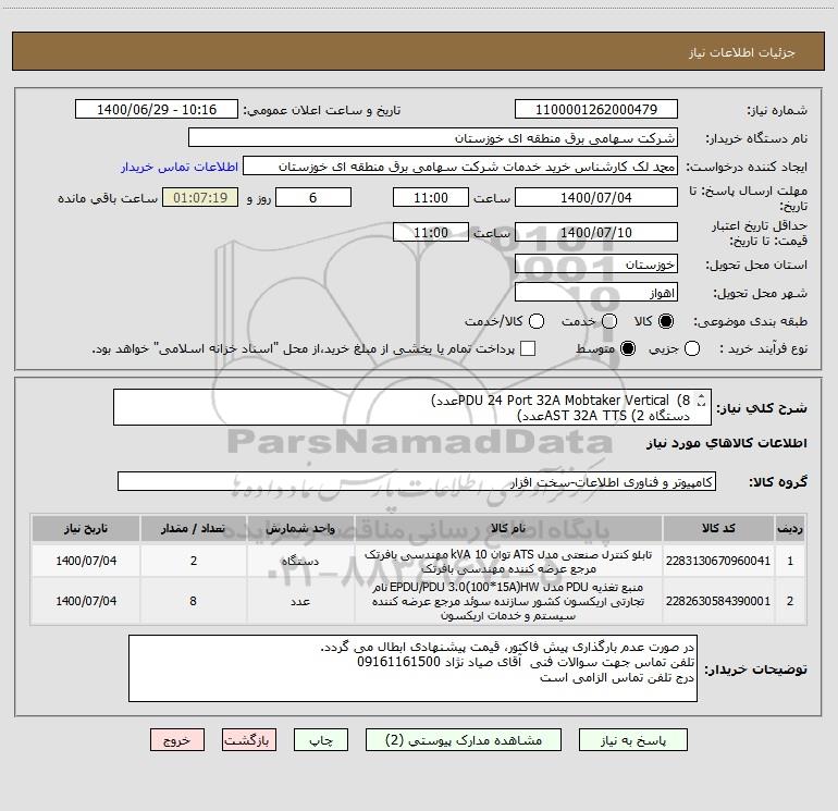 نام دستگاه خریدار:شرکت سهامی برق منطقه ای خوزستان