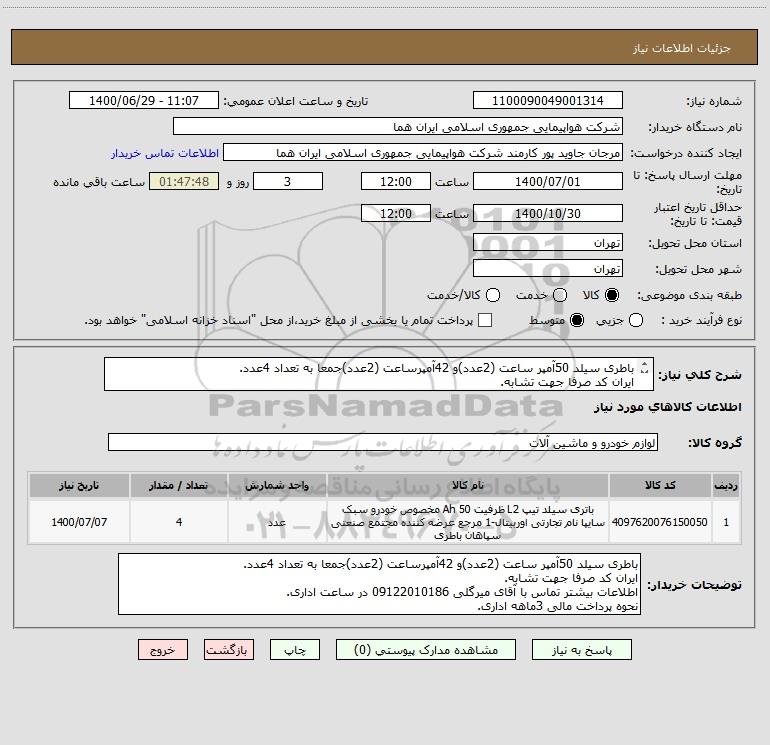 نام دستگاه خریدار:شرکت هواپیمایی جمهوری اسلامی ایران هما