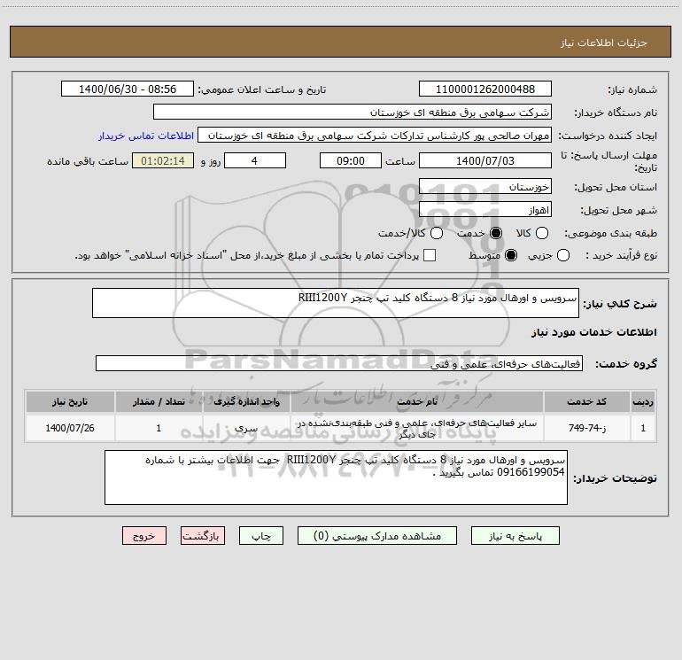 شرح کلی نیاز: سرویس و اورهال مورد نیاز 8 دستگاه کلید تپ چنجر RIII1200Y