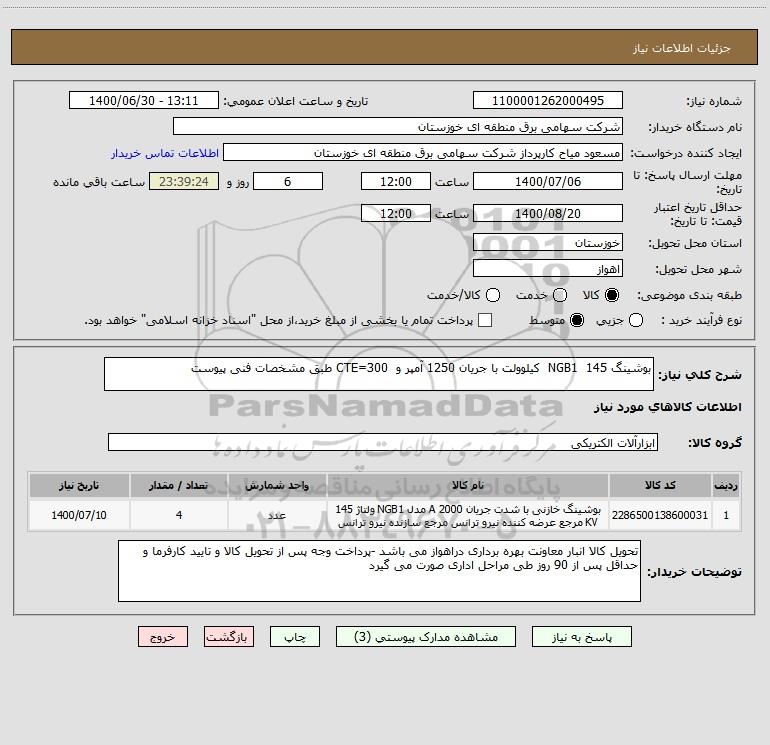 نام دستگاه خریدار:شرکت سهامی برق منطقه ای خوزستان