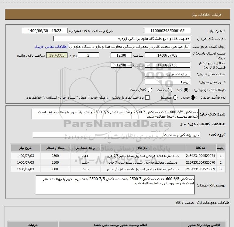 نام دستگاه خریدار:معاونت غذا و دارو دانشگاه علوم پزشکی ارومیه