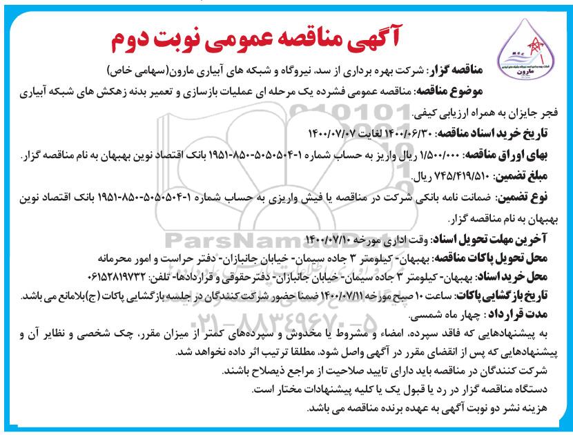 مناقصه گزار: شرکت بهره برداری از سد، نیروگاه و شبکه های آبیاری مارون (سهامی خاص)