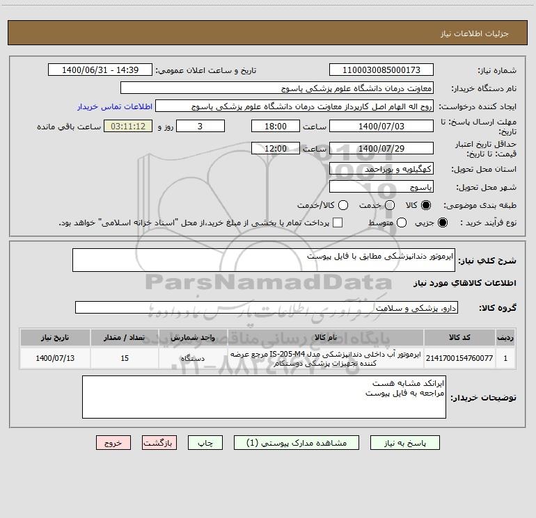 نام دستگاه خریدار:معاونت درمان دانشگاه علوم پزشکی یاسوج