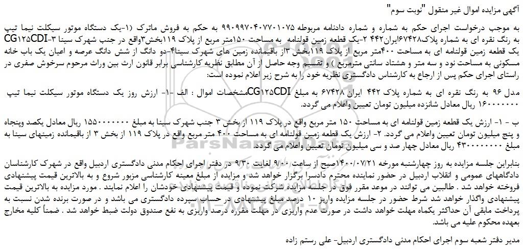 "آگهی مزایده اموال غیر منقول "نوبت سوم