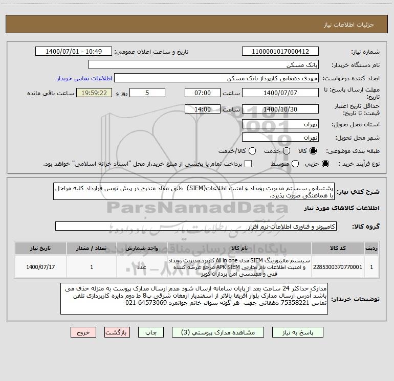 شرح کلی نیاز: پشتیبانی سیستم مدیریت رویداد و امنیت اطلاعات(SIEM) طبق مفاد مندرج در پیش نویس قرارداد کلیه مراحل با هماهنگی صورت پذیرد.