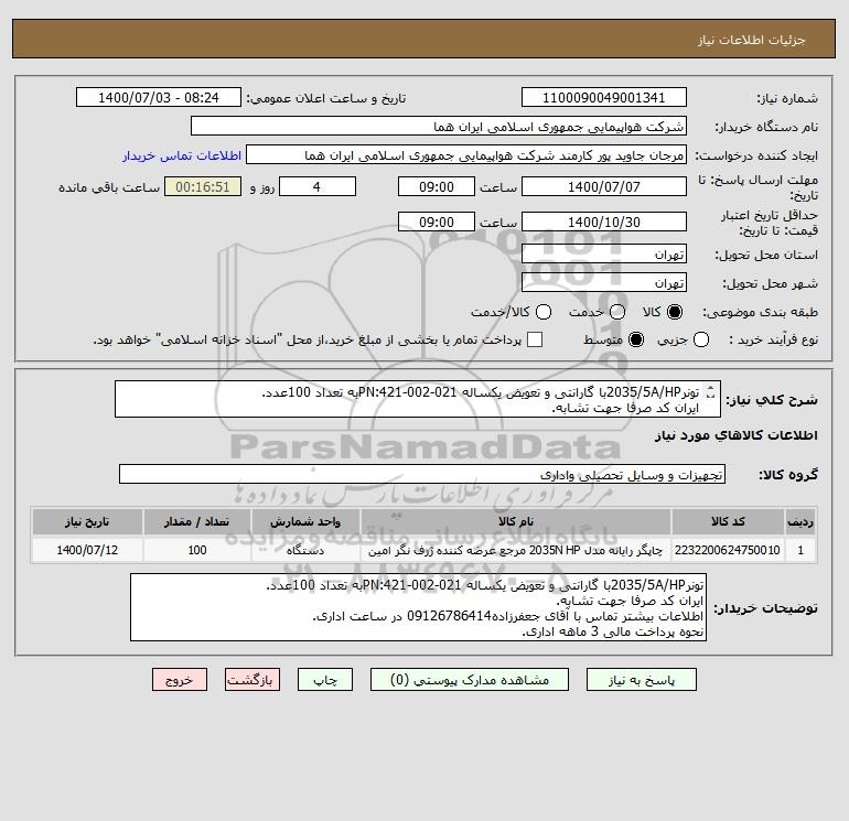نام دستگاه خریدار:شرکت هواپیمایی جمهوری اسلامی ایران هما