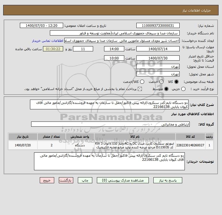 نام دستگاه خریدار: سازمان صدا و سیمای جمهوری اسلامی ایران(معاونت توسعه و فناور