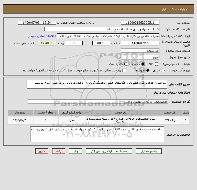 نام دستگاه خریدار:شرکت سهامی برق منطقه ای خوزستان