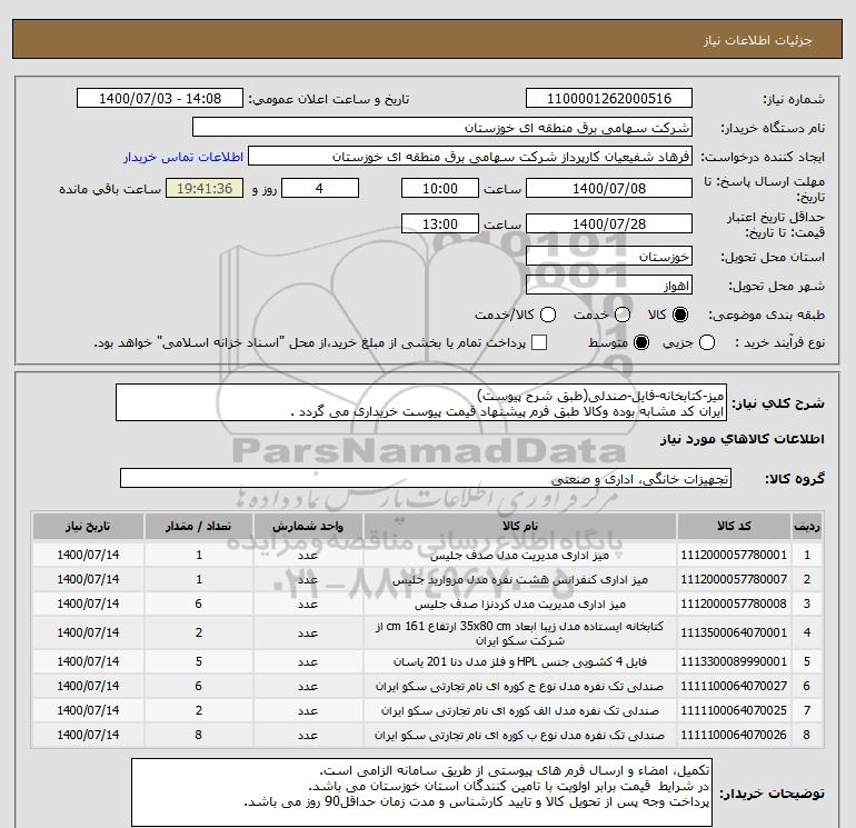 استعلام میز-کتابخانه-فایل-صندلی(طبق شرح پیوست) ایران کد مشابه بوده وکالا طبق فرم پیشنهاد قیمت پیوست خریداری می گردد ., استعلام میز-کتابخانه-فایل-صندلی(طبق شرح پیوست) ایران کد مشابه بوده وکالا طبق فرم پیشنهاد قیمت پیوست خریداری می گردد .