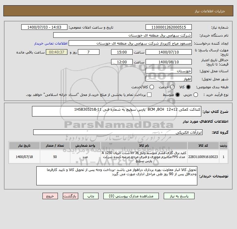نام دستگاه خریدار:شرکت سهامی برق منطقه ای خوزستان