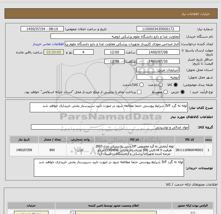 استعلام لوله ته گرد IVF شرایط پیوستی حتما مطالعه شود در صورت تایید سرپرستار بخش خریداری خواهد شد, استعلام لوله ته گرد IVF شرایط پیوستی حتما مطالعه شود در صورت تایید سرپرستار بخش خریداری خواهد شد