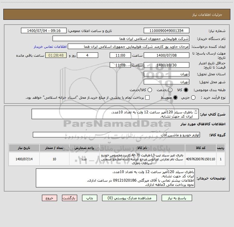 نام دستگاه خریدار:شرکت هواپیمایی جمهوری اسلامی ایران هما