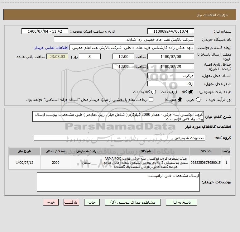 نام دستگاه خریدار:شرکت پالایش نفت امام خمینی ره شازند