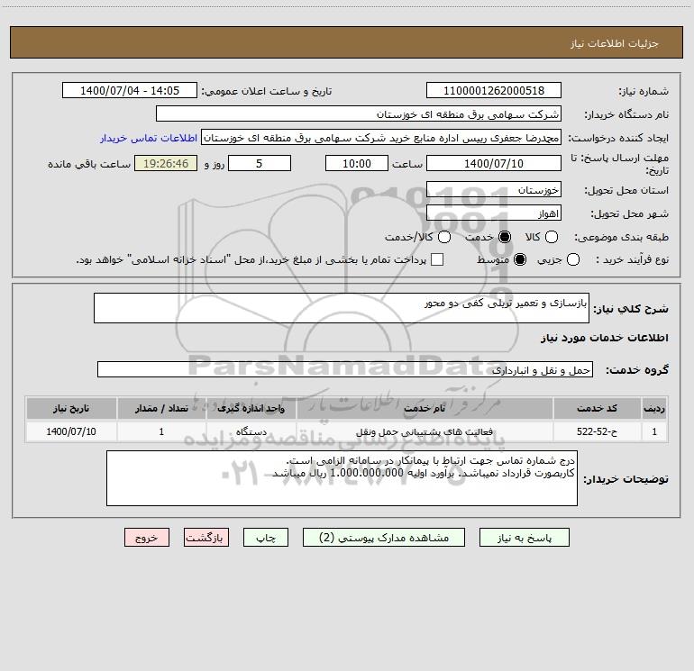 استعلام بازسازی و تعمیر تریلی کفی دو محور , استعلام بازسازی و تعمیر تریلی کفی دو محور