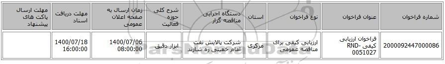مناقصه، فراخوان ارزیابی کیفی RND-0051027, فراخوان ارزیابی کیفی RND-0051027
