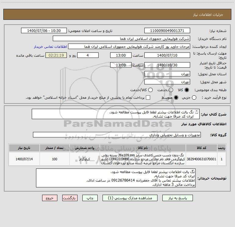 نام دستگاه خریدار:شرکت هواپیمایی جمهوری اسلامی ایران هما