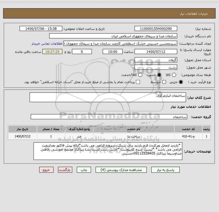 شرح کلی نیاز: ساختمان انبارمرکزی