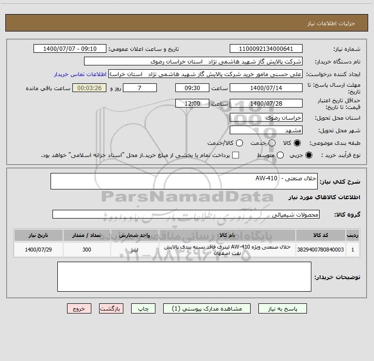 شرح کلی نیاز: حلال صنعتی - AW-410