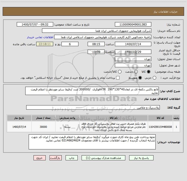 نام دستگاه خریدار:شرکت هواپیمایی جمهوری اسلامی ایران هما