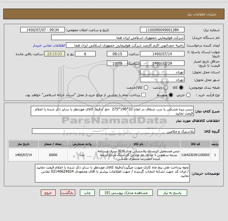 نام دستگاه خریدار:شرکت هواپیمایی جمهوری اسلامی ایران هما
