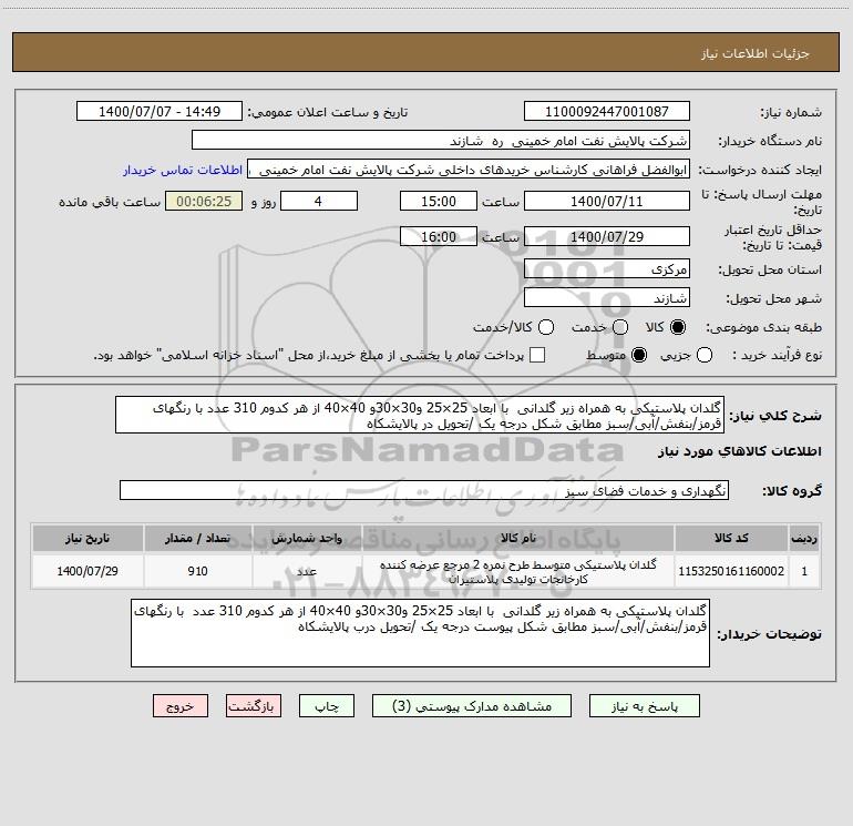 شرح کلی نیاز: گلدان پلاستیکی به همراه زیر گلدانی با ابعاد 25×25 و30×30و 40×40 از هر کدوم 310 عدد با رنگهای قرمز/بنفش/آبی/سبز مطابق شکل درجه یک /تحویل در پالایشکاه