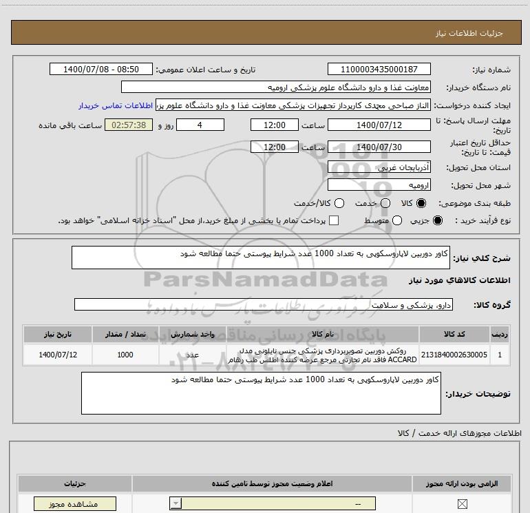 نام دستگاه خریدار:معاونت غذا و دارو دانشگاه علوم پزشکی ارومیه