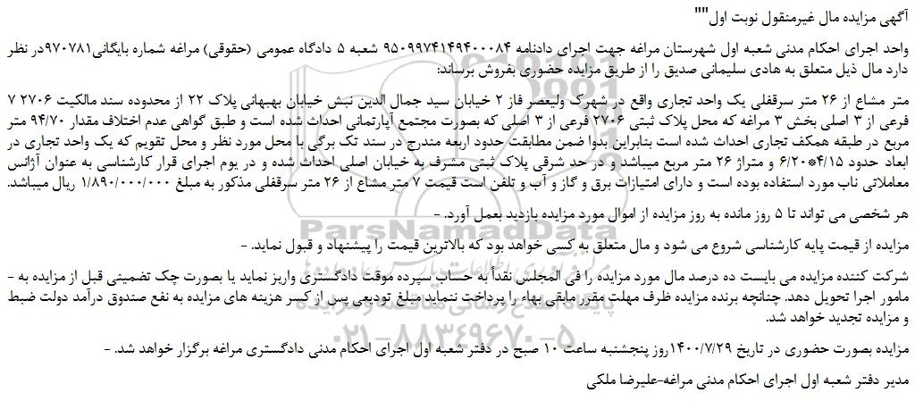 مزایده،مزایده فروش 7 متر مشاع از 26 متر سرقفلی یک واحد تجاری