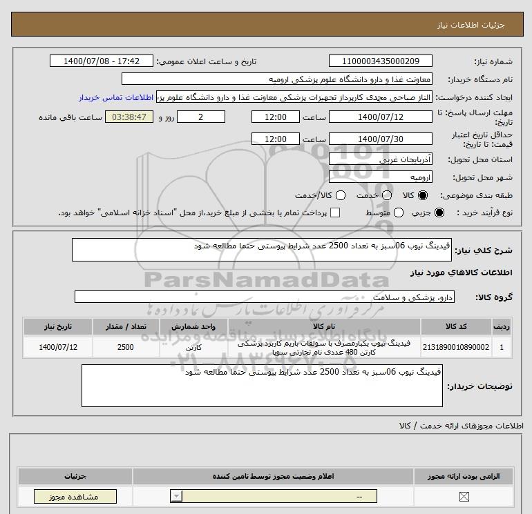 استعلام فیدینگ تیوب 06سبز به تعداد 2500 عدد شرایط پیوستی حتما مطالعه شود, استعلام فیدینگ تیوب 06سبز به تعداد 2500 عدد شرایط پیوستی حتما مطالعه شود