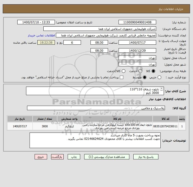 نام دستگاه خریدار:شرکت هواپیمایی جمهوری اسلامی ایران هما