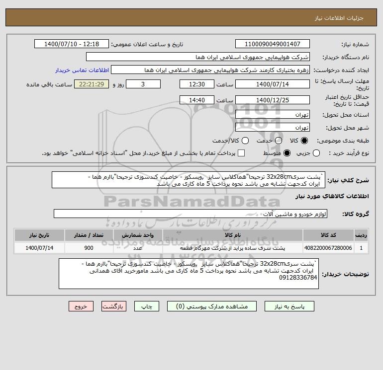نام دستگاه خریدار:شرکت هواپیمایی جمهوری اسلامی ایران هما