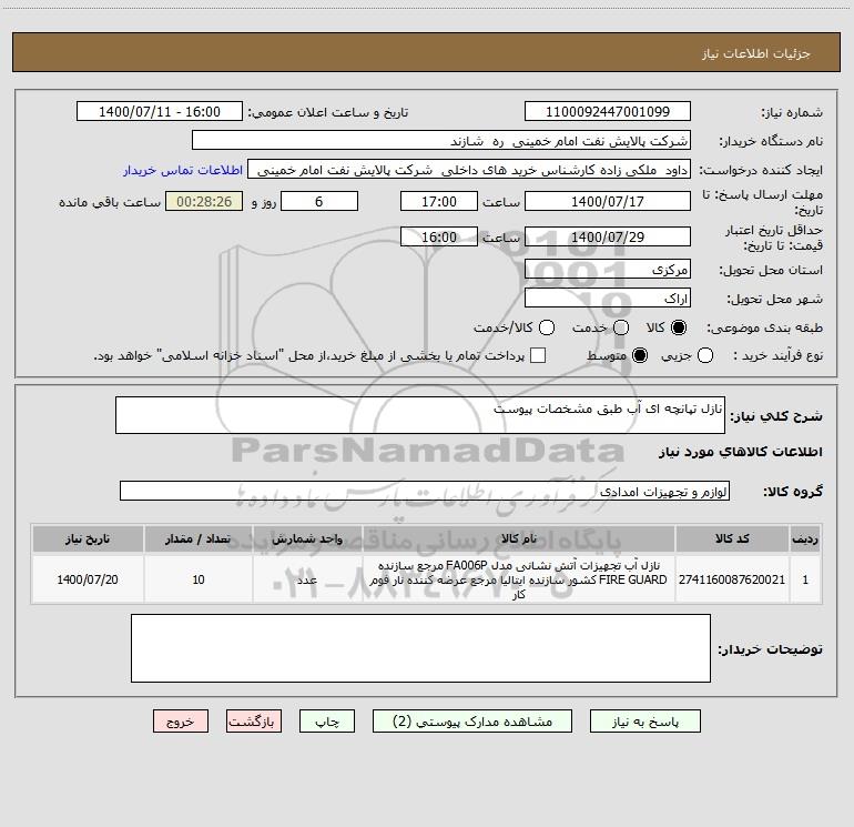 شرح کلی نیاز: نازل تپانچه ای آب طبق مشخصات پیوست