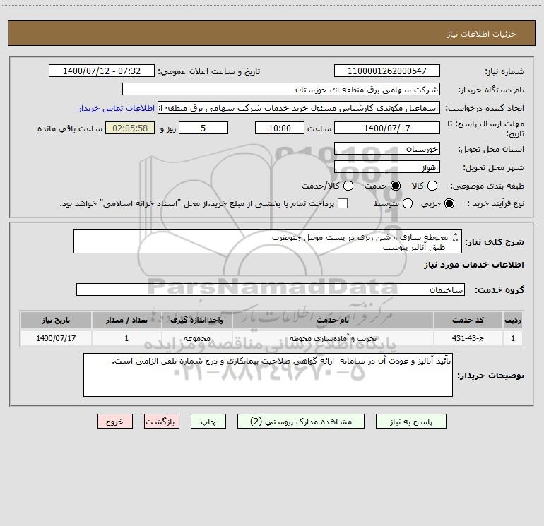 استعلام محوطه سازی و شن ریزی در پست موبیل جنوبغرب طبق آنالیز پیوست , استعلام محوطه سازی و شن ریزی در پست موبیل جنوبغرب طبق آنالیز پیوست